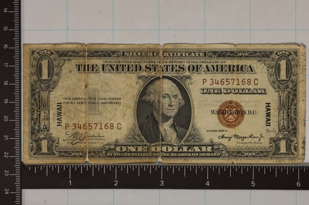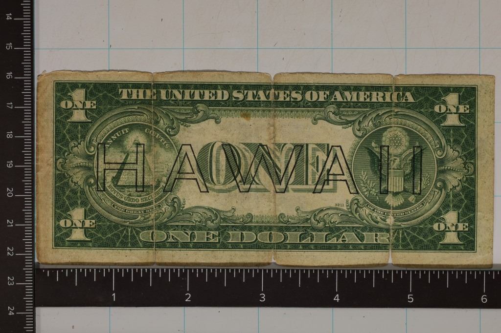 HAWAII OVERPRINT ON THE REVERSE, HAS TEARS AT EVERY FOLD TOP AND BOTTOM