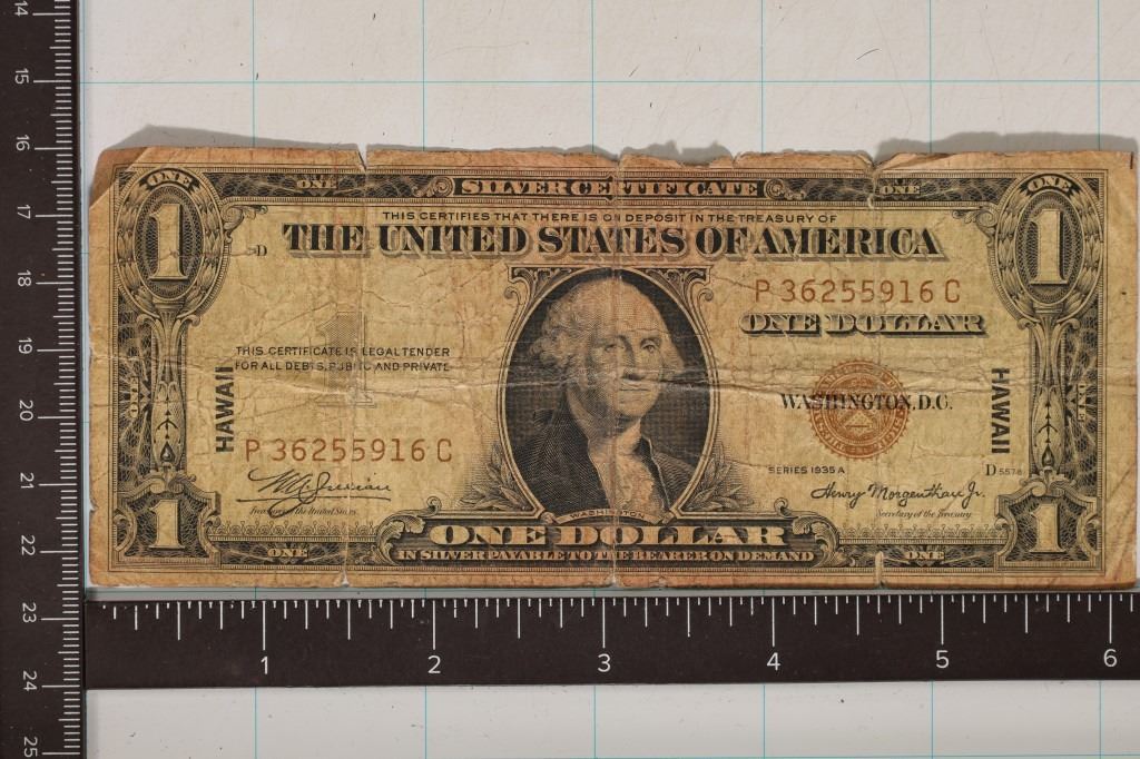 BROWN SEAL AS SHOWN, IN TOUGHER SHAPE WITH DISCOLORATION AND TEARS NOTED