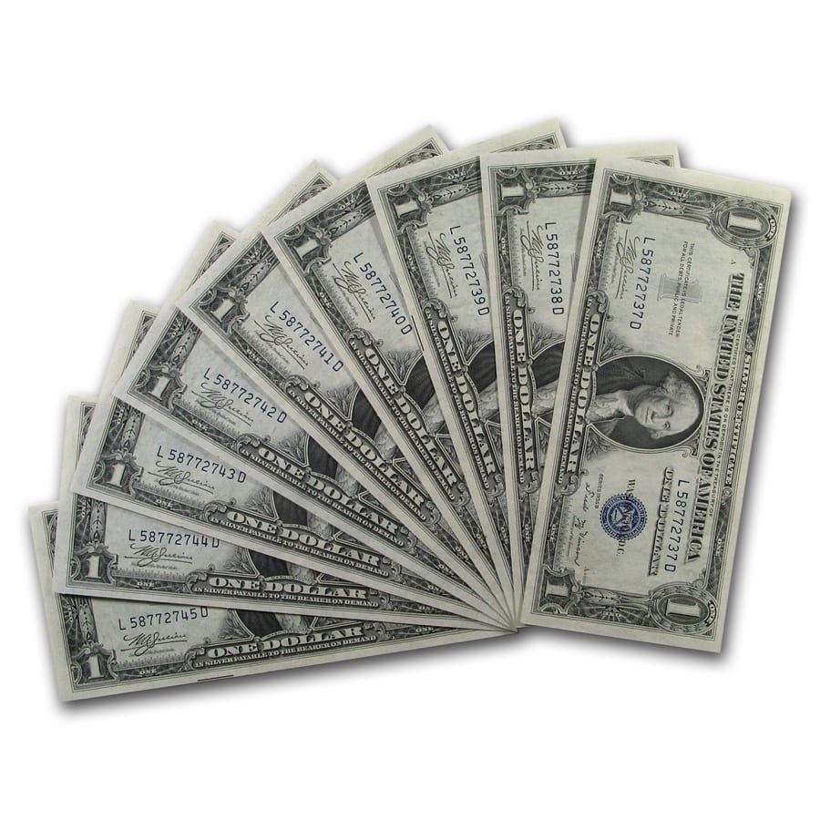 1935-B $1.00 Silver Certificate AU/CU (9 Consecutive Notes)