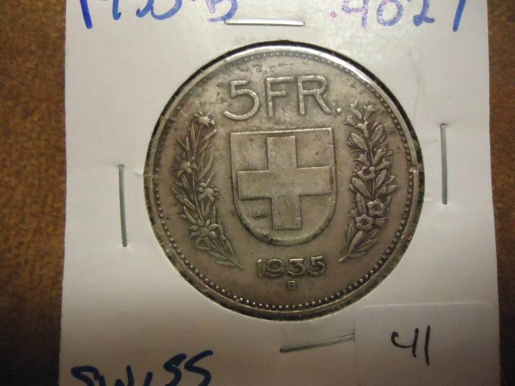 1935-B SWISS SILVER 5 FRANC .4027 OZ. ASW
