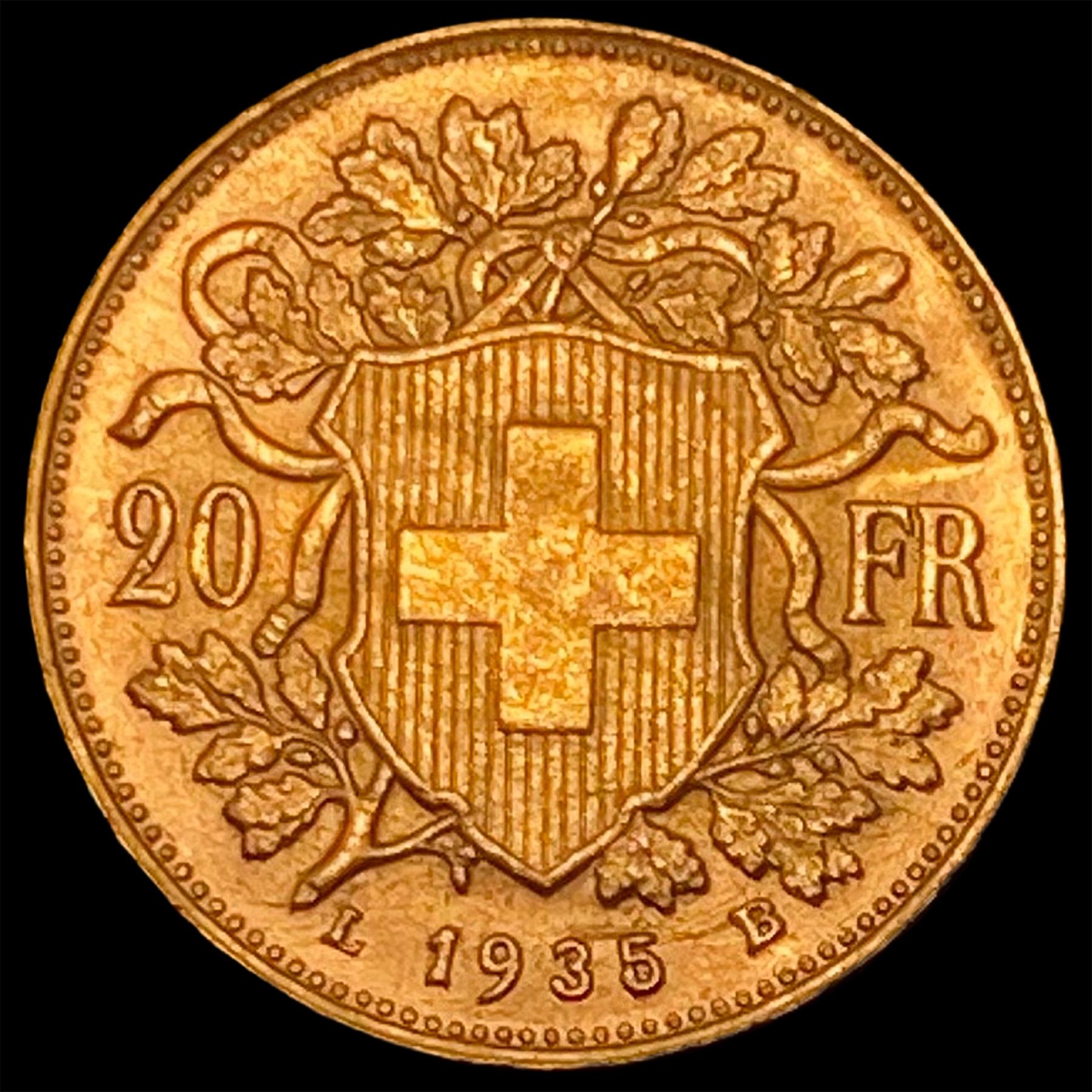 1935-B Switzerland .1867oz Gold 20 Francs UNCIRCULATED