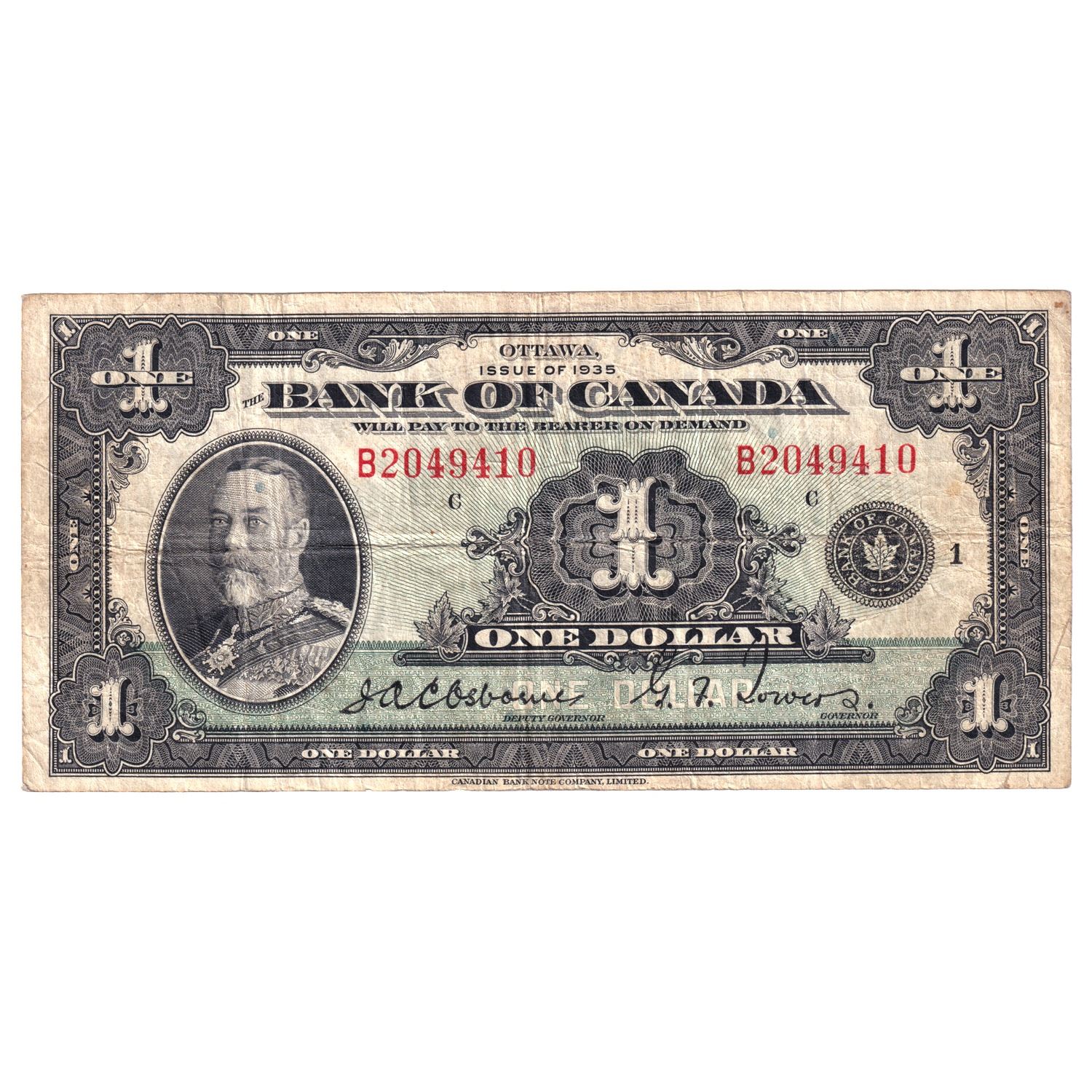 1935 BC-1 $1 Bank of Canada English Note, S/N: B2049410, VG-F.