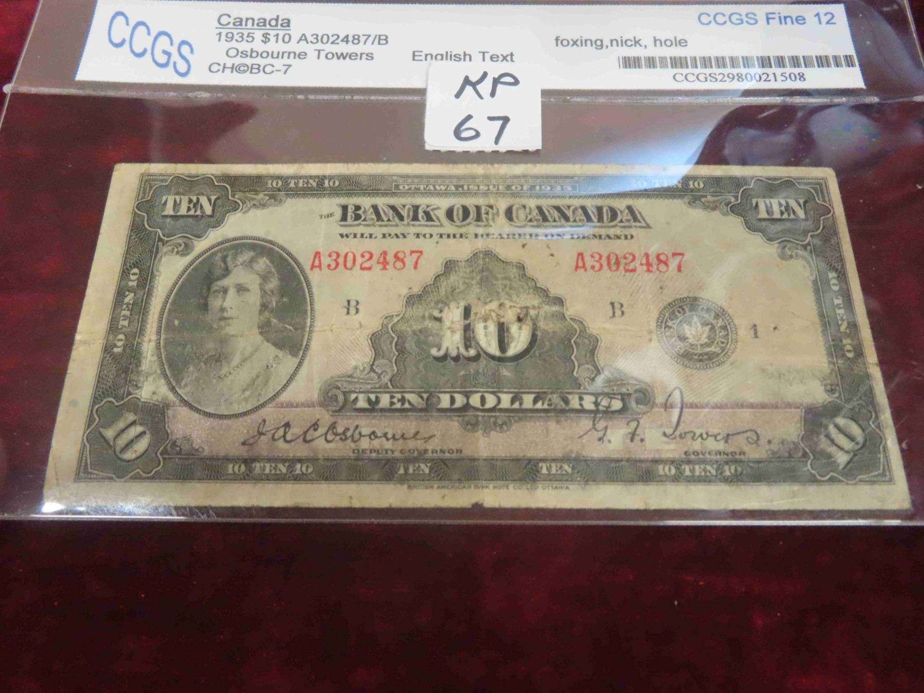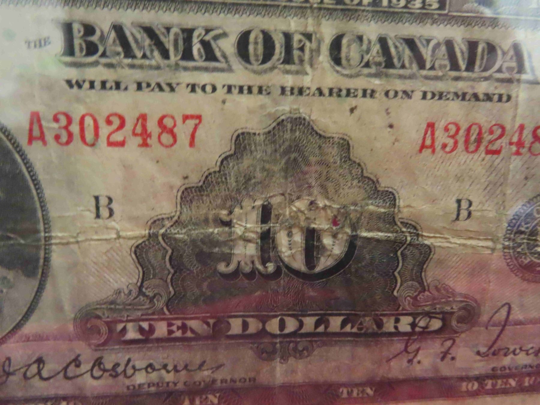 1935 Bank of Canada Fine 12 Ultra Rare $10 Bill