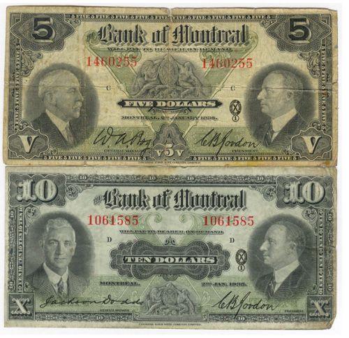 0858 - 1935 Bank of Montreal $5 & $10-VG/F+