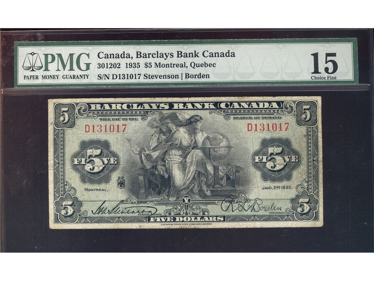 1935 Barclays Bank of Canada; $5 # D131017 CH-30-12-02 PMG CH F15.