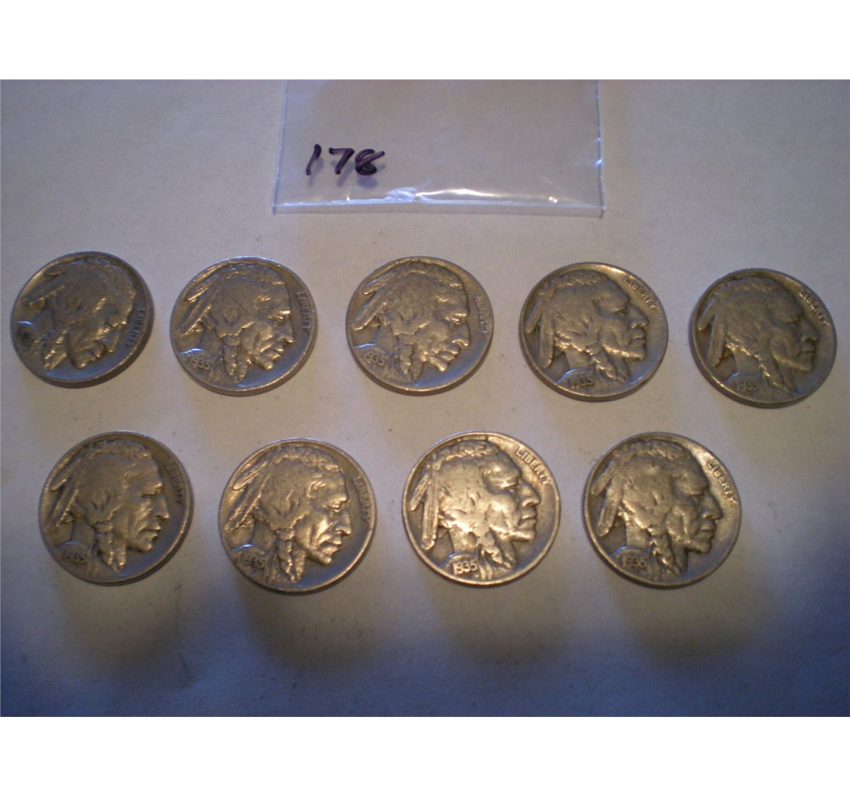 1935 Buffalo Nickels x9 coins Nice Legible Dates!!!!***Coin, Currency, Gemstones & All Items Listed in this auction along with their respective Grades, Conditions and Values are not T&T Auctions Responsibility. Every person has their own opinion. It is the responsibility of the buyer to examine, grade and value each item in this auction to their own satisfaction before they bid. Bidders shall rely entirely on their own inspection and information before bidding.