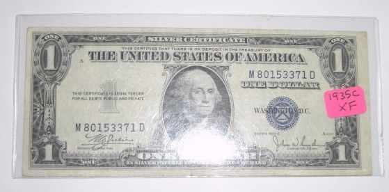 1935 C SERIES $1 SILVER CERTIFICATE BILL SERIAL # M80153371D *EXTREMELY RARE EXTRA FINE HIGH GRADE*!! ***Coin, Currency & All Items Listed in this auction - Grades, Conditions and Values are not Safe Deposit Coins LLC Responsibilty. Grades, Condition and Values are determined by Consigner(s) & Buyers ONLY