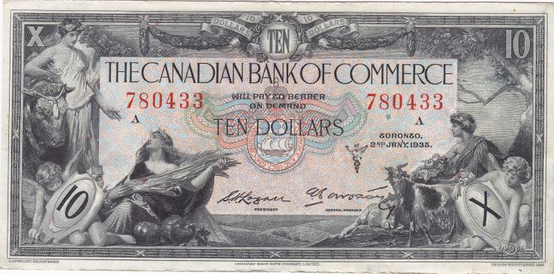 1935 Canadian - Bank of Commerce - $10 Bank Note - Type #1 - VF-30/XF Condition