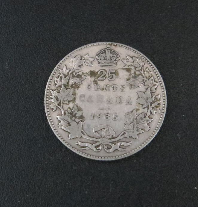 1935 Canadian Silver 25 Cent Coin