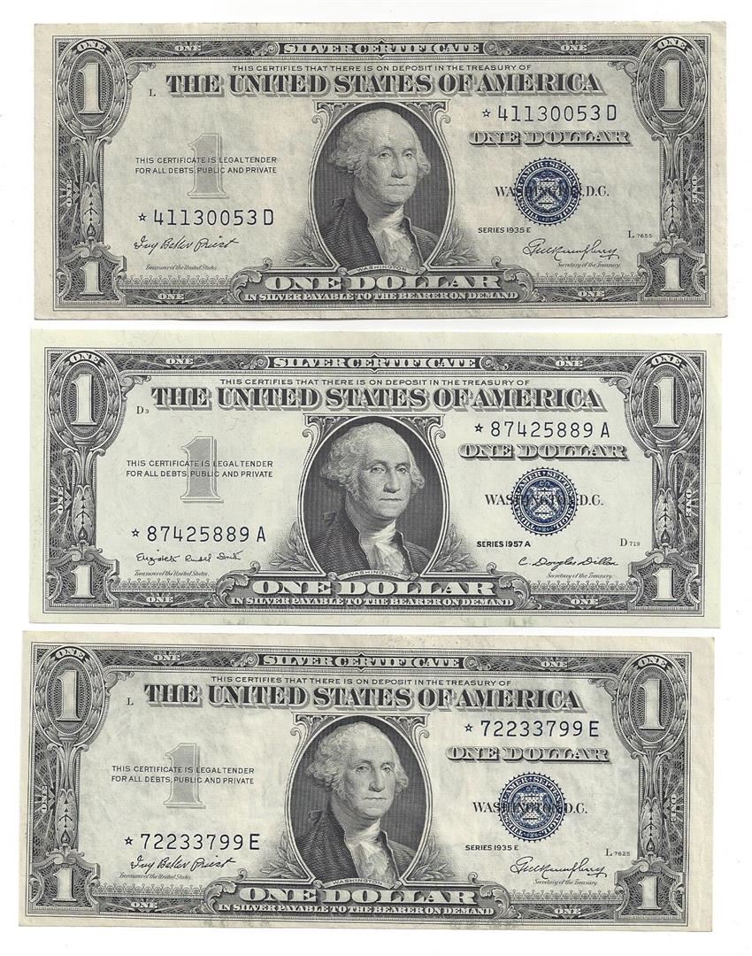 1935 Choice Uncirculated $1 Silver Certificate Currency Lot of 3.