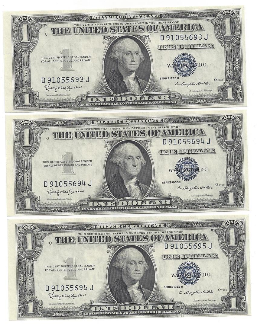 1935 Choice Uncirculated $1 Silver Certificate Currency Lot of 3.