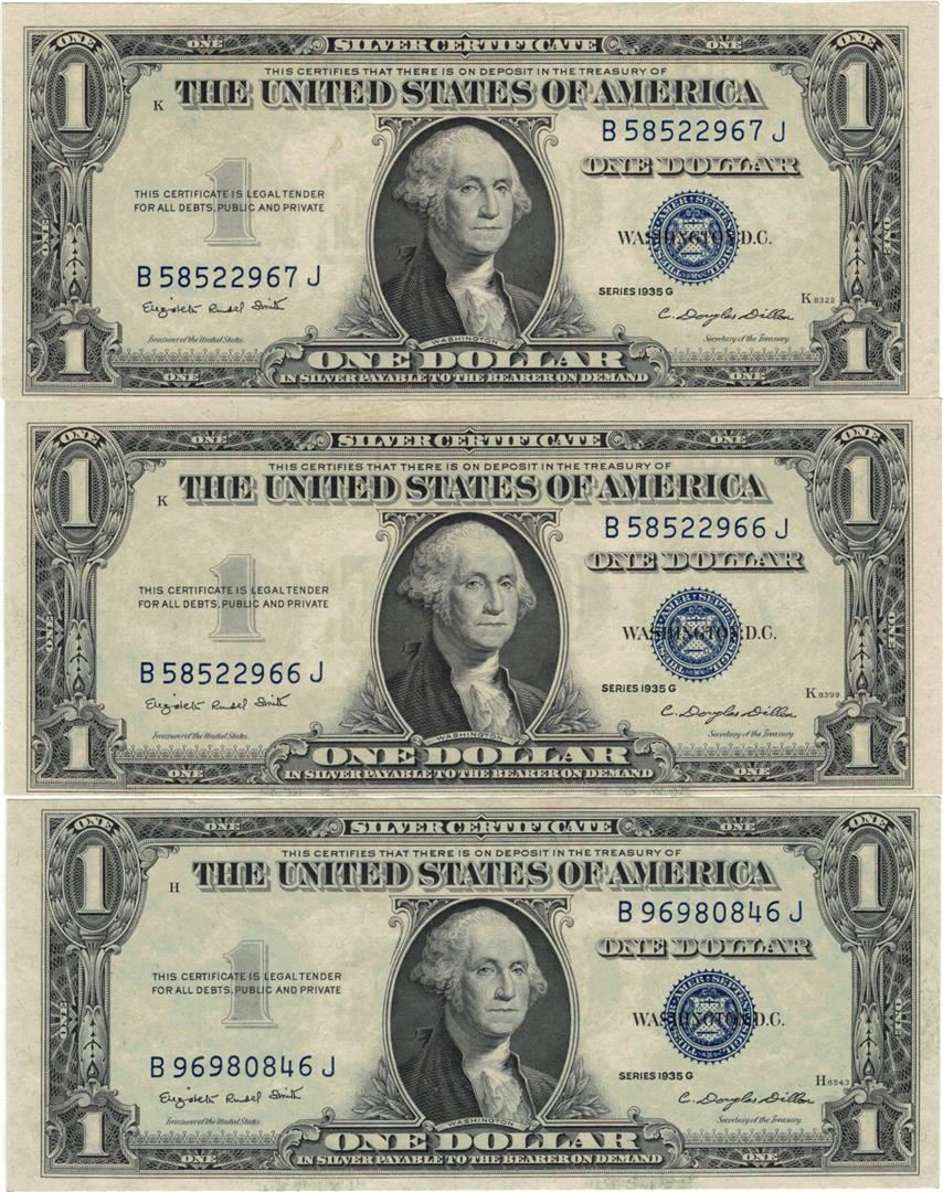 1935 Choice Uncirculated $1 Silver Certificate Currency Lot of 3.