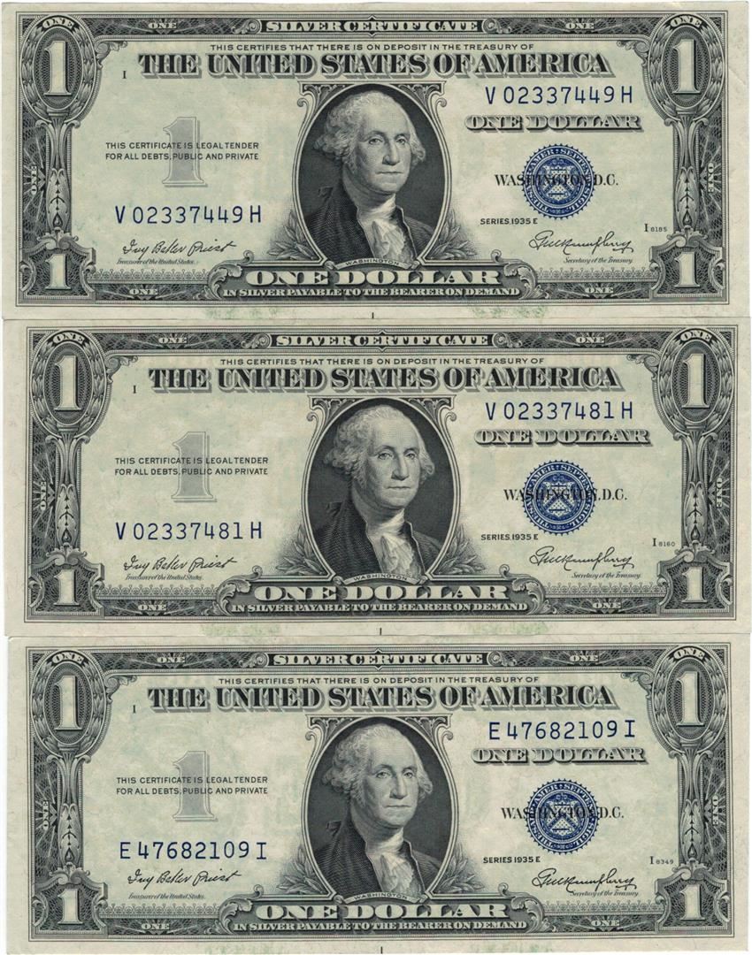 1935 Choice Uncirculated $1 Silver Certificate Currency Lot of 3.