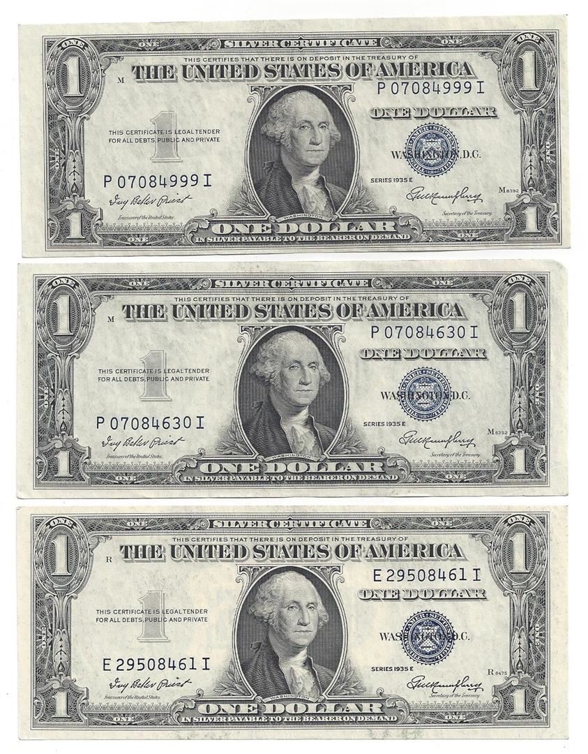 1935 Choice Uncirculated $1 Silver Certificate Currency Lot of 3.