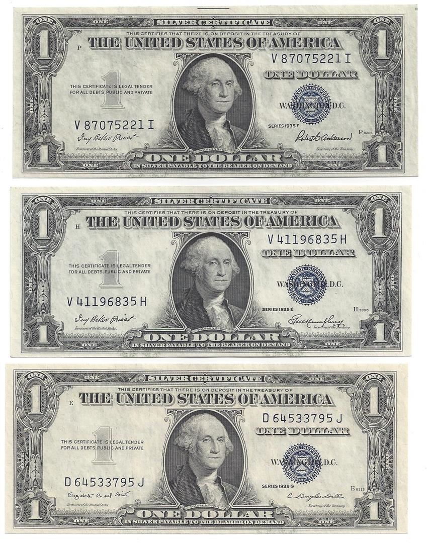 1935 Choice Uncirculated $1 Silver Certificate Currency Lot of 3.
