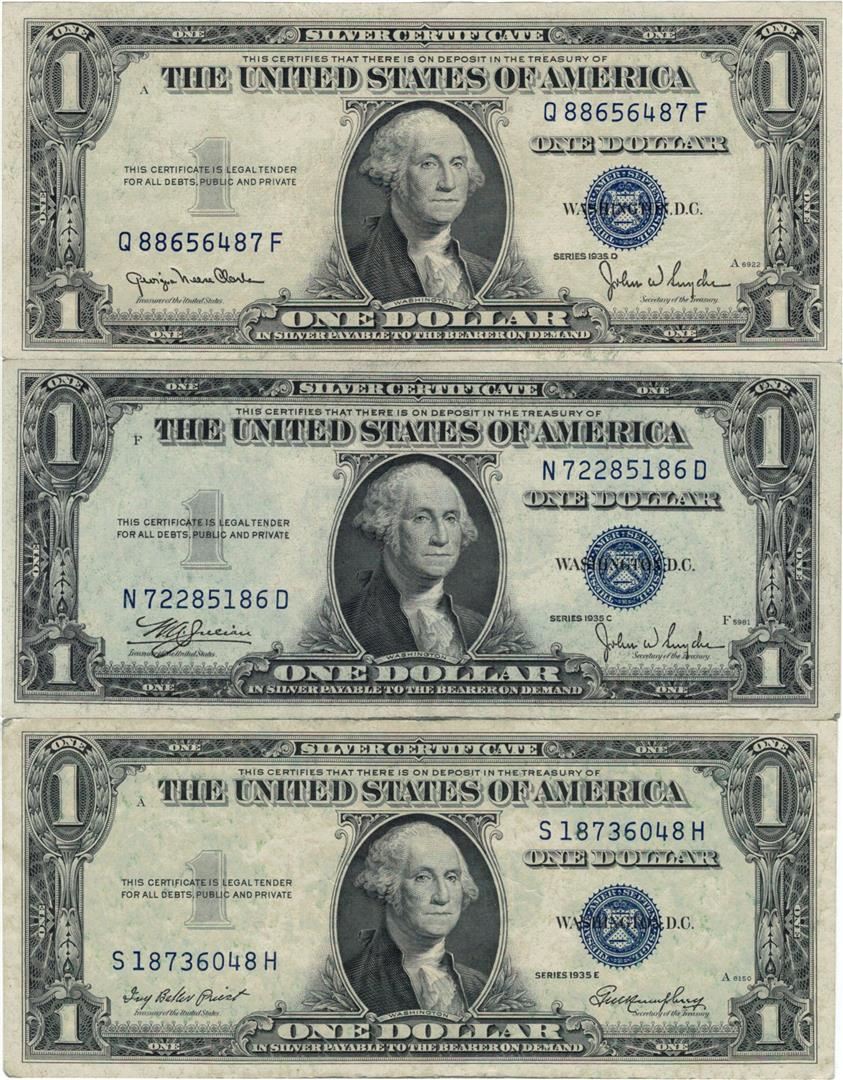 1935 Choice Uncirculated $1 Silver Certificate Currency Lot of 3.