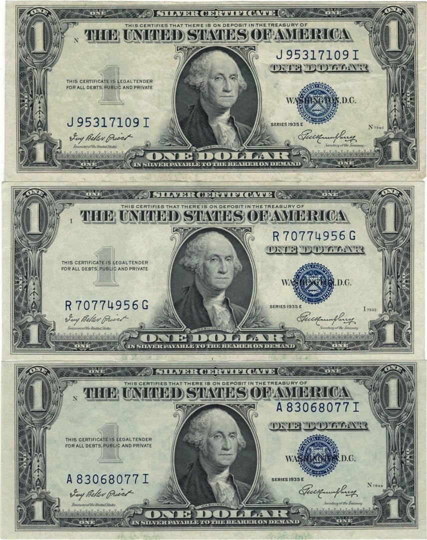 1935 Choice Uncirculated $1 Silver Certificate Currency Lot of 3.