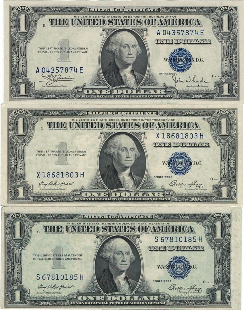 1935 Choice Uncirculated $1 Silver Certificate Currency Lot of 3.