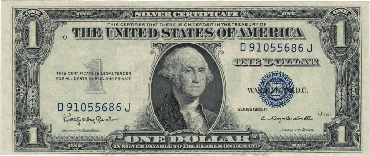 1935 Choice Uncirculated $1 Silver Certificate Currency.