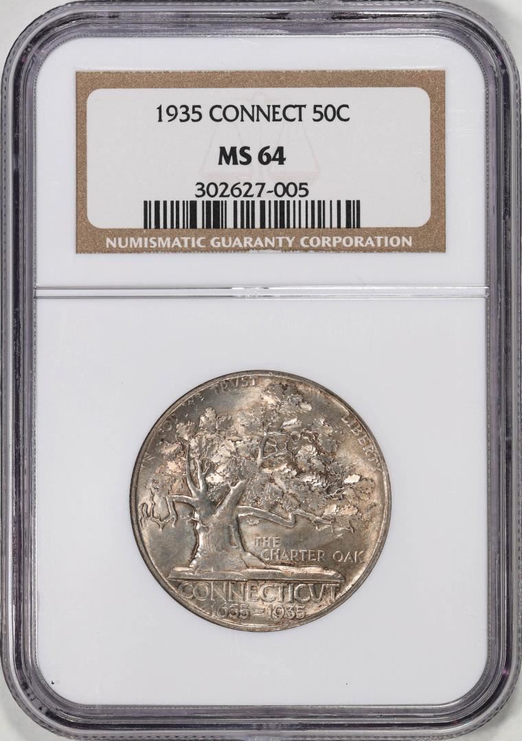 One 1935 Connecticut Commemorative Half Dollar Coin NGC MS64. NGC Certified.