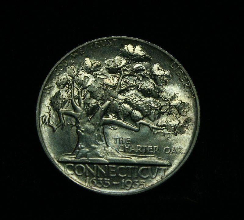 This is a light golden toned example of the Connecticut Tercentenary Commemorative. The Connecticut Commemorative was very short produced with only 25K produced and they sold out almost immediately, unlike most other commems of the era. When examining a Connecticut Commem for wear Check at the base of the tree and on the upper part of the eagle’s wing. Coin World's Coin Values lists ms65 at $500 and The Wholesale Greysheet lists ms65 at $400. Estimated Value $450