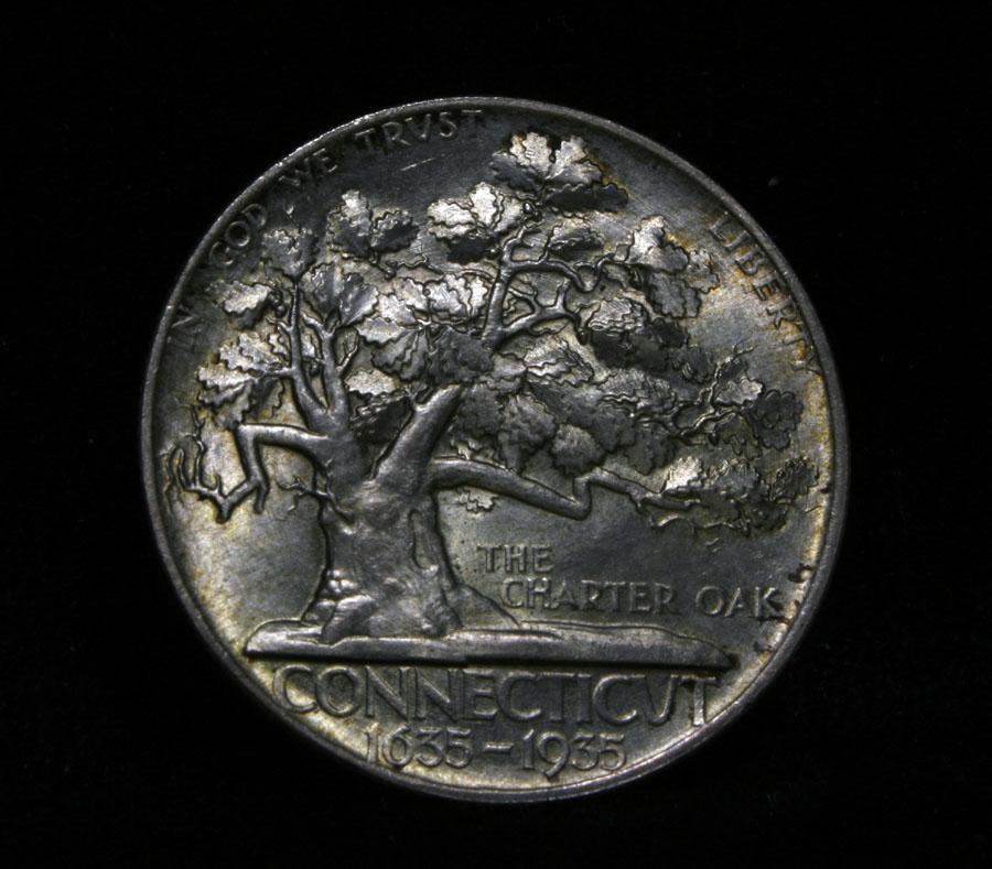 This is a Beautiful deep golden toned example of the Connecticut Tercentenary Commemorative. Excellent example. Vastly superior luster and eye appeal. The Connecticut Commemorative was very short produced with only 25K produced and they sold out almost immediately, unlike most other commems of the era. When examining a Connecticut Commem for wear Check at the base of the tree and on the upper part of the eagle’s wing. Coin World's Coin Values lists ms66 at $850 and The Wholesale Greysheet lists ms66 at $700. Estimated Value $750