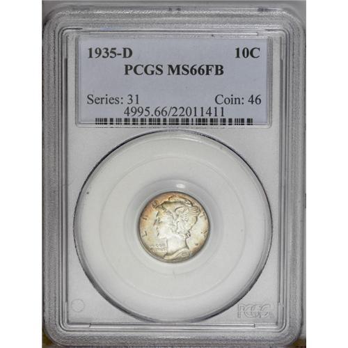 1935-D 10C MS66 Full Bands PCGS. The most difficult of 1935-D[10C] MS66 Full Bands PCGS.