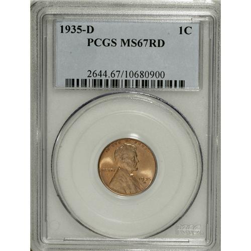 <B>1935-D 1C MS67 Red PCGS.</B></I> PCGS Population (66/1). NGC Census: (175/0). Mintage: 47,000,000. Numismedia Wsl. Price: $200. (#2644)<BR><BR><b>Shipping:</b> Coins & Currency (<a target="_blank" href="http://www.heritageauctions.com/common/shipping.php">view shipping information</a>)