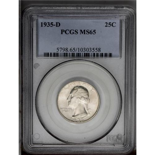 1935-D 25C MS65 PCGS. A satiny-white Gem that features 1935-D[25C] MS65 PCGS.