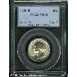 <B>1935-D 25C MS65 PCGS.</B></I> A very thin film of champagne color rests over lustrous surfaces. A few minute marks on Washington's portrait and on the eagle are mentioned for accuracy. Lot:6807