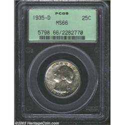 1935-D 25C MS66 PCGS. Golden-brown, yellow-green, and lilac hues reverberate across the crisply stru