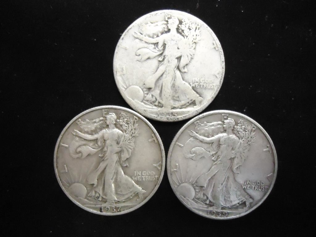 1935-D,37 & 39 WALKING LIBERTY HALF DOLLARS