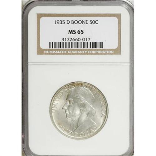 <B>1935-D 50C Boone MS65 NGC.</B></I> . NGC Census: (213/79). PCGS Population (281/84). Mintage: 5,005. Numismedia Wsl. Price for NGC/PCGS coin in MS65: $228. (#9259)<BR><BR><b>Shipping:</b> Coins & Currency (<a target="_blank" href="http://www.heritageauctions.com/common/shipping.php">view shipping information</a>)