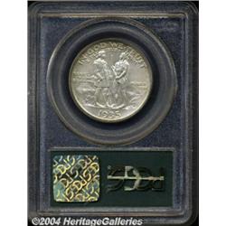 <B>1935-D<50C> Boone MS66 PCGS.</B></I> Honey and sky-blue colors enrich this satiny and sharply struck premium Gem. The fields are well preserved. Certified in an older green label holder. A mere 5,005 pieces were struck. Population: 72 in 66, 5 finer (3/04). <BR><BR><B>Important notice:</B> Heritage usually auctions material at the rate of 200-250 lots per hour. On some occasions eBay Live bid software or the Internet may not be able to keep up with the pace of the auction. We recommend placing a realistic absentee bid now as insurance to avoid disappointment. Occasionally the auctioneer may eliminate or reject an eBay Live bid, and the auctioneer may also reopen a lot after the close of the eBay live bidding (usually because we missed an audience bid), and may reject your bid even if it shows you as the winning bidder. By bidding via eBay Live, you agree that Heritage may award the lot to another bidder at its sole discretion under the circumstances described above or any other reasonable circumstances. Since eBay bids are not shown to us until we open the lot on the floor, we treat those bids just like floor bids. In most cases the floor responds before the eBay bid is presented to us, due to Internet lag time, so for consistency we have made it a policy that floor bids are always considered first over tie eBay live bids. Also please note that all Heritage lots purchased through eBay Live carry a 20% Buyer's Premium. Please make sure you read the Terms and Conditions before you bid. </span></font></tr></table></td></tr></table>