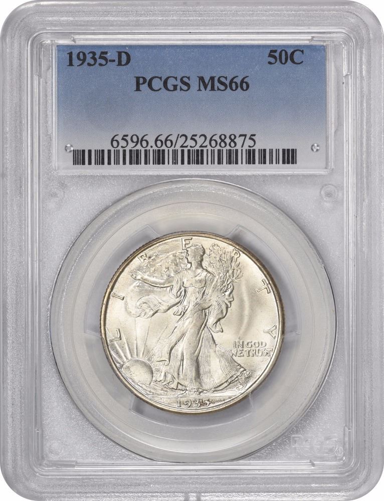This fully brilliant and frosty Denver Mint half dollar exhibits whispers of faint golden iridescence on the obverse. Somewhat lightly struck at the centers, not an uncommon thing for the date. Though just over three million examples of the date were struck, it has proven to be elusive at the high end of the Gem classification as offered here. You won’t find a finer PCGS-certified example of the date according to their Population Report. Bid as though you mean it for this “condition rarity” sleeper.