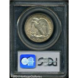 1935-D 50C MS64 PCGS. Powder-blue and light rose-b <B>1935-D 50C MS64 PCGS.</B></I> Powder-blue and light rose-beige colors compete for territory on the highly lustrous surfaces. Generally adequately struck, and a few grade-limiting marks on the left legs of Liberty and the eagle. <BR><BR><B>Important notice:</B> Heritage usually auctions material at the rate of 200-250 lots per hour. On some occasions eBay Live bid software or the Internet may not be able to keep up with the pace of the auction. We recommend placing a realistic absentee bid now as insurance to avoid disappointment. Occasionally the auctioneer may eliminate or reject an eBay Live bid, and the auctioneer may also reopen a lot after the close of the eBay live bidding (usually because we missed an audience bid), and may reject your bid even if it shows you as the winning bidder. By bidding via eBay Live, you agree that Heritage may award the lot to another bidder at its sole discretion under the circumstances described above or any other reasonable circumstances. Since eBay bids are not shown to us until we open the lot on the floor, we treat those bids just like floor bids. In most cases the floor responds before the eBay bid is presented to us, due to Internet lag time, so for consistency we have made it a policy that floor bids are always considered first over tie eBay live bids. Also please note that all Heritage lots purchased through eBay Live carry a 20% Buyer's Premium. Please make sure you read the Terms and Conditions before you bid. This lot is being auctioned in conjunction with a live floor auction by Heritage Galleries & Auctioneers. All final auction and invoice information will be supplied by Heritage Galleries & Auctioneers, and all other information should be considered preliminary. Lot:6181