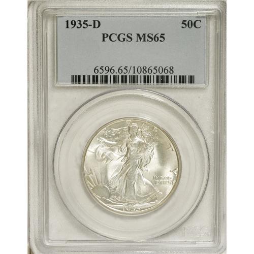 1935-D 50C MS65 PCGS. Brilliant throughout, the soft,