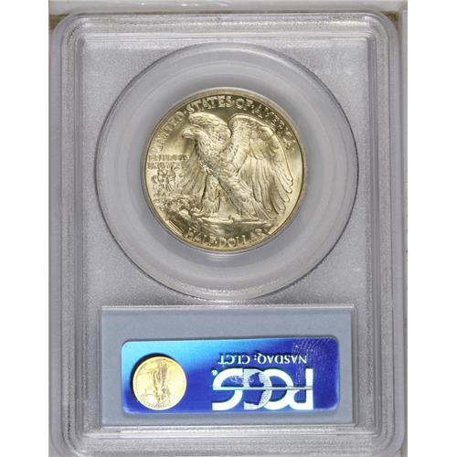 1935-D 50C MS65 PCGS. Golden patina drapes the luminou