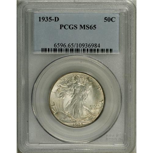 1935-D 50C MS65 PCGS. Subtly lustrous with delicate sk
