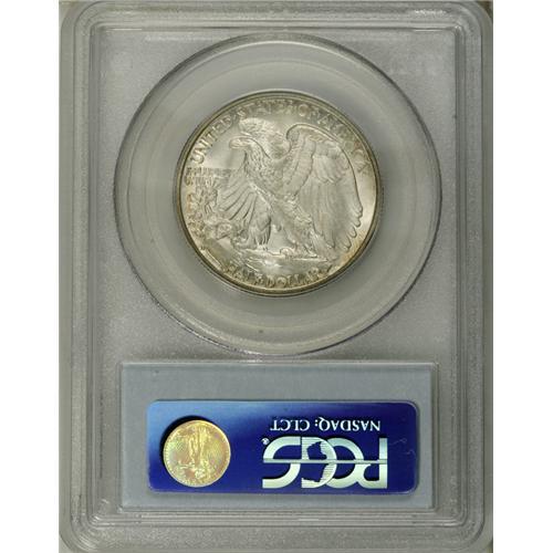 <B>1935-D 50C MS65 PCGS.</B></I> Subtly lustrous with delicate sky-blue and champagne toning over much of each side. The surfaces are largely clean, but the usual central striking weakness is apparent.<BR><BR><b>Shipping:</b> Coin/Currency (<a target="_blank" href="http://www.heritageauctions.com/common/shipping.php">view shipping information</a>)