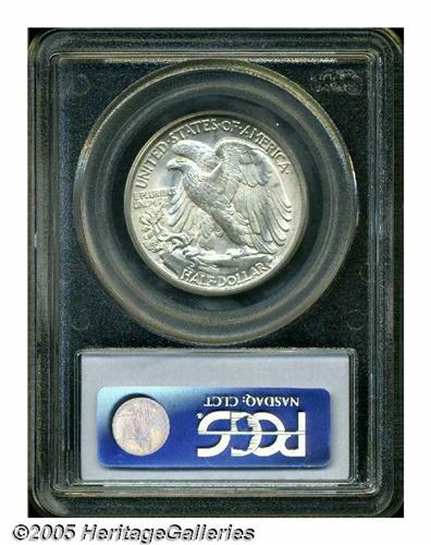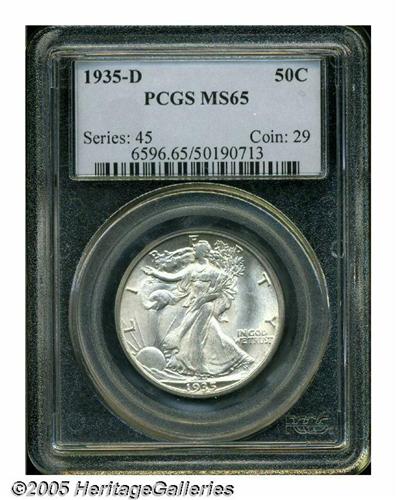 <B>1935-D<50C> MS65 PCGS.</B></I> Typically soft on Liberty's head and hand, this shimmering Gem also displays untoned silver-gray surfaces that are well preserved and virtually contact-free, on both sides of the coin. A highly attractive example of this Walking Liberty half dollar issue.