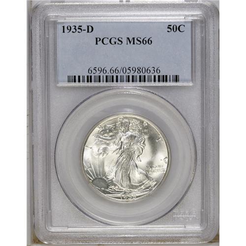<B>1935-D 50C MS66 PCGS.</B></I> The brilliant snow-white surfaces project an exuberant, frosty sheen on both sides. Close inspection with a magnifier reveals a few wispy marks, but they are far too insignificant to detract from the assigned grade level or the overall visual appeal of this noteworthy Premium Gem. Population: 76 in 66, 0 finer at either service (12/06).<BR><BR><b>Shipping:</b> Coins & Currency (<a target="_blank" href="http://www.heritageauctions.com/common/shipping.php">view shipping information</a>)