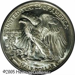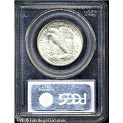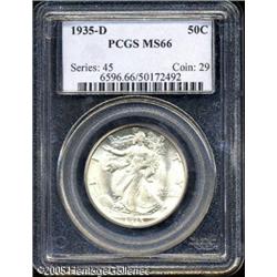 <B>1935-D 50C MS66 PCGS.</B></I> The fact that this coin can be called "sharply struck" is remarkable in itself. This issue is never found with a full strike, and we cannot remember the last time (if ever) we have seen a coin with detailing this strong. Liberty's head detail is stronger than most, the hand is fully defined, and most of the skirt lines are present with just occasional breaks above the knee. The coin shows bright, satiny mint luster and there is just the lightest, even overlay of pale golden toning. Population: 53 in 66, 0 finer (1/05). Lot:8036