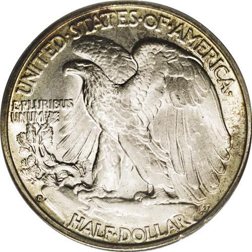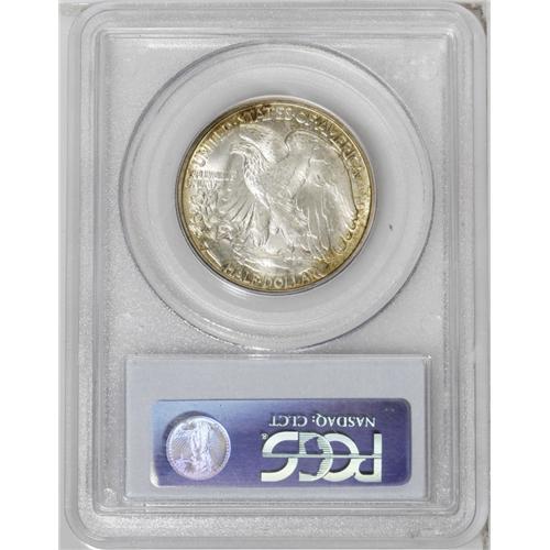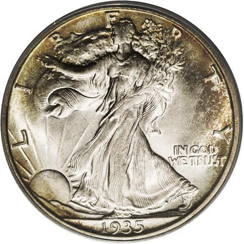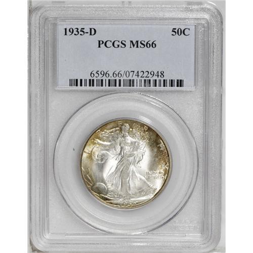 <B>1935-D<50C> MS66 PCGS.</B></I> This piece is not an MS66 just because of the clean overall surfaces and superb mint luster, but it also shows strong definition on the head of Liberty. The surfaces are bright and frosted with an abundant amount of golden-russet patina at the borders on each side.
