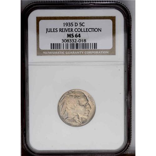 1935-D 5C MS64 NGC. Pleasing champagne-gold patina rol 1935-D[5C] MS64 NGC.