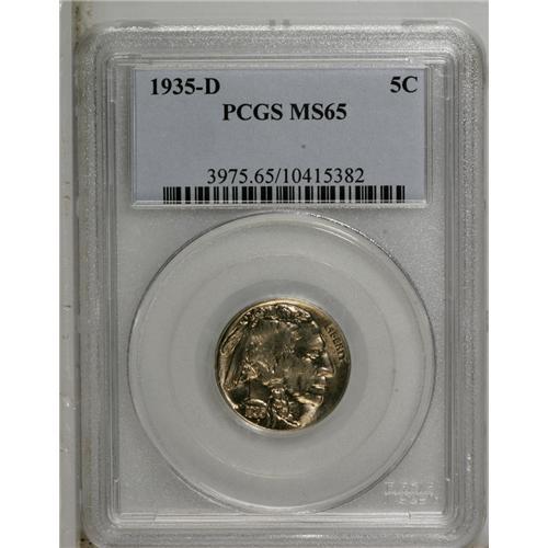1935-D 5C MS65 PCGS. A solidly struck gold-gray Gem th