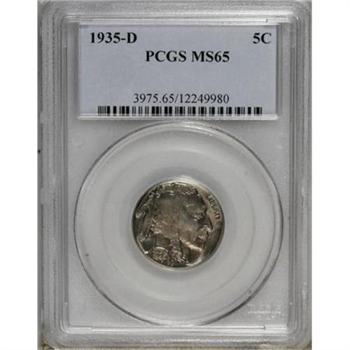 <B>1935-D 5C MS65 PCGS.</B></I> . PCGS Population (380/135). NGC Census: (256/37). Mintage: 12,092,000. Numismedia Wsl. Price for NGC/PCGS coin in MS65: $380. (#3975)<BR><BR><B>Coin Engraver:</B> James E. Fraser<BR><BR><b>Shipping:</b> Coins & Currency (<a target="_blank" href="http://www.heritageauctions.com/common/shipping.php">view shipping information</a>)
