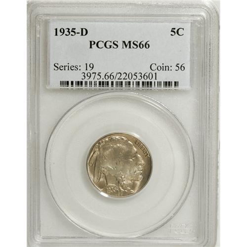 1935-D 5C MS66 PCGS. Somewhat frosty texture assumes a