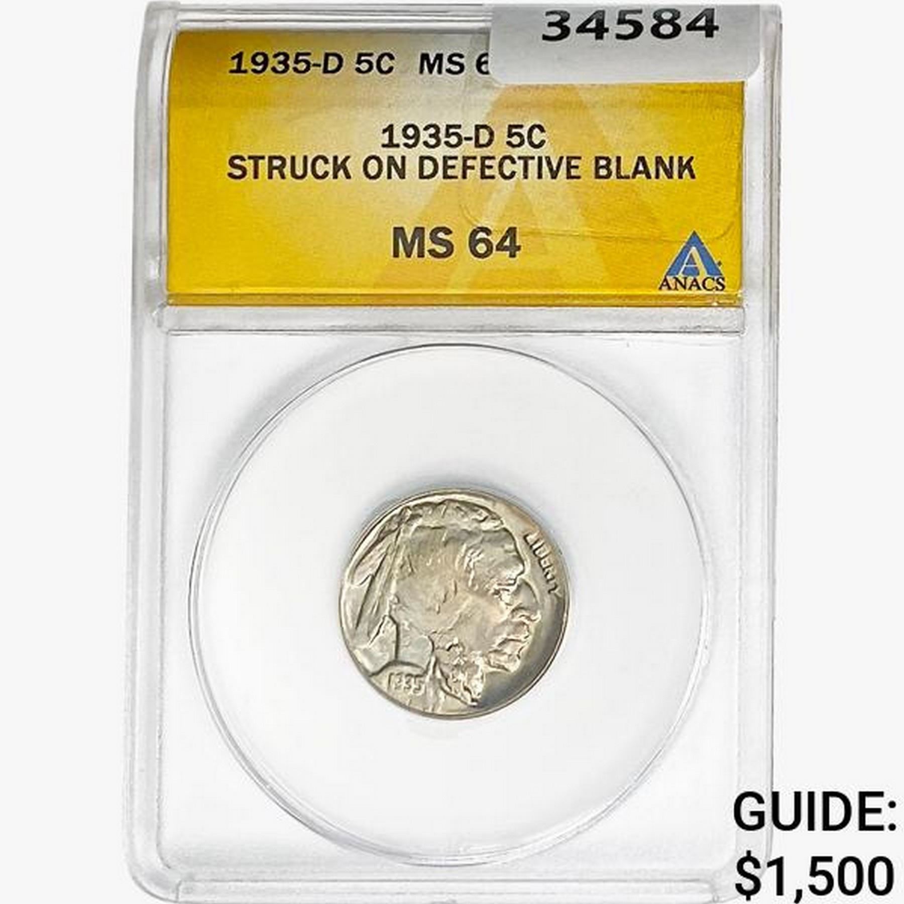 1935-D Buffalo Nickel ANACS MS64 Defect Blank