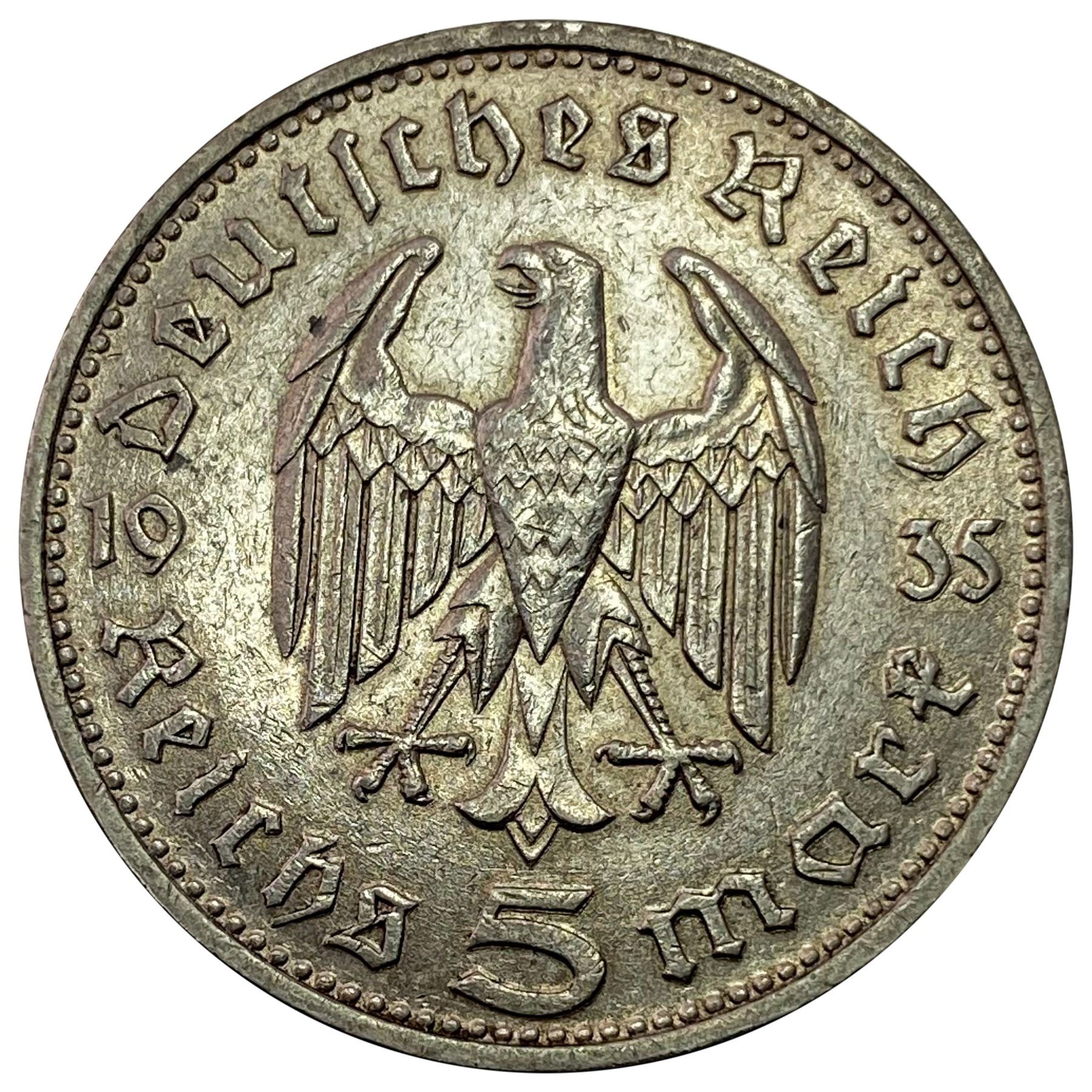 1935-D Germany Silver 5 Reichsmark CHOICE AU